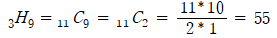 ex) 사과, 배, 귤 3가지 과일이 있을 때 9개를 구매하는 경우의 수