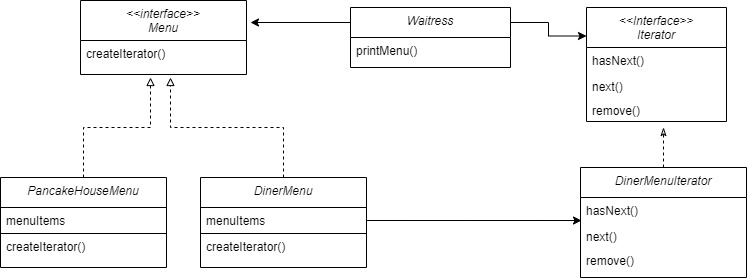 Iterator dinerIterator = dinerMenu.createIterator();