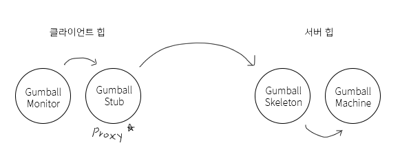 2. 실제로는 클라이언트 보조 객체(프록시)가 서버에 연락을 취하고, 메소드에 대한 정보를 전달 및 서버 응답을 기다림.
